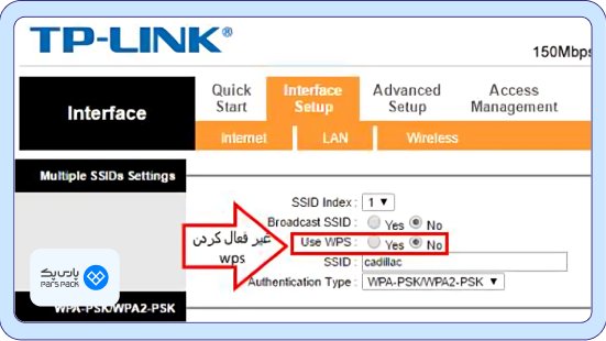 WPS مودم را غیرفعال کنید. این مورد از تنظیمات بخش Wireless مودم قابل انجام است.